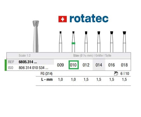 Rotatec Diamound Fissure Size 010 Green 5Pcs