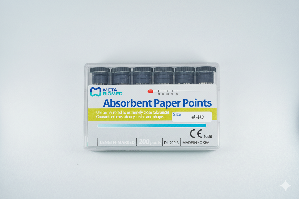 GP 02 40 Gutta Percha Points | Meta Biomed Korea are precision-engineered obturation materials that deliver accuracy, consistency, and reliability in root canal treatments. Manufactured by Meta Biomed, a world-renowned Korean dental materials company, these gutta percha points are designed for perfect canal filling and superior sealing performance.