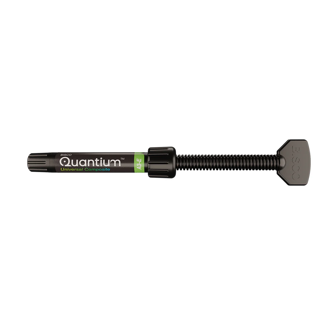 Bisco USA Quantium® Universal Composite Single Syringes Enamel A3 is a premium light-cured, radiopaque dental composite designed to deliver exceptional strength, esthetics, and handling for both anterior and posterior restorations.